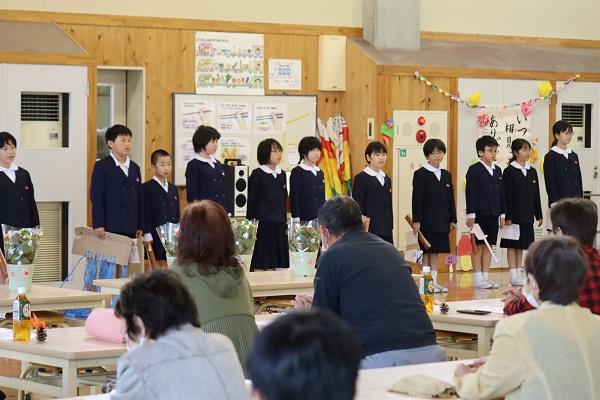 閉校記念式典では、思い出スライドショーや思い出ランキングなど実行委員会が準備してきた楽しいプログラムが披露され和やかに温かな時間を過ごしました。最後の鼓笛演奏に続き、相見小学校校歌を児童と地域の方の伴奏で声高らかに歌い上げました。「最後の校歌で涙がこみ上げました」との地域の方の声もありました。
