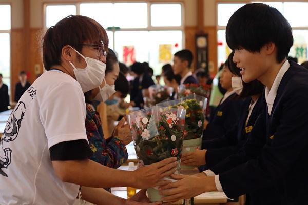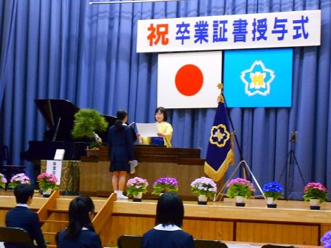 一人一人の手に卒業証書が手渡されます。その後、多くの方からお祝いと励ましの言葉をいただきました。