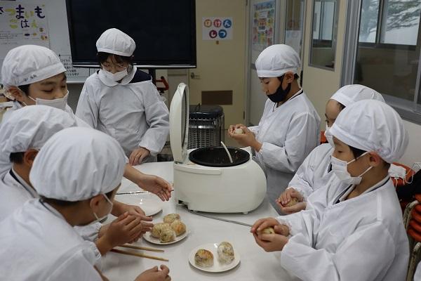 地域の方から秋にご寄付いただいたお米で、12月に1年生から4年生は「おにぎりづくり」をしました。そして、5・6年生は「中巻きづくり」に挑戦しました。「中巻きづくり」では、一本ずつ丁寧に巻き、出来上がるごとに笑顔が広がっていきました。6年生は昨年に続き2回目ということもあり、手際よくできました。手作りの楽しさ・感謝の心・地元への誇りを感じた時間でした。貴重なお米を本当にありがとうございました。