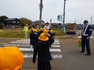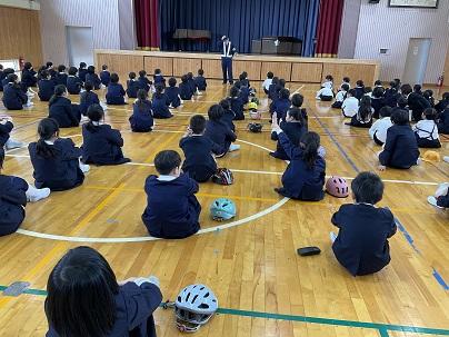 4月11日(木)に交通安全教室が行われました。交通安全協会、見守り隊、羽咋警察署、町環境安全課の方々のご協力を頂き、1・2年生は歩道の歩き方や交差点の渡り方を、3年生は自転車の乗り方を、実地練習しました。命を守るための大切な勉強ができました。準備や指導を頂きました皆様、本当にありがとうございました。