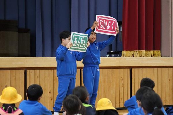 どの学年も「ありがとう」「だいすき」「がんばって」の気持ちがあふれる出し物でした。体育館全体が温かな雰囲気に包まれ、素敵な時間を全員で共有できました。企画・運営に全力で頑張った5年生も立派でした。子ども達は、この絆を大切にしながら、宝達中学校、押水小学校で新たな絆を結んでくれると思います。