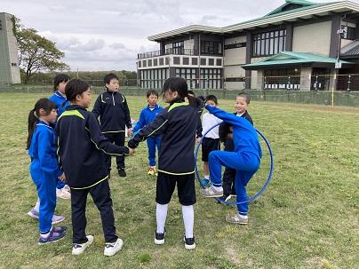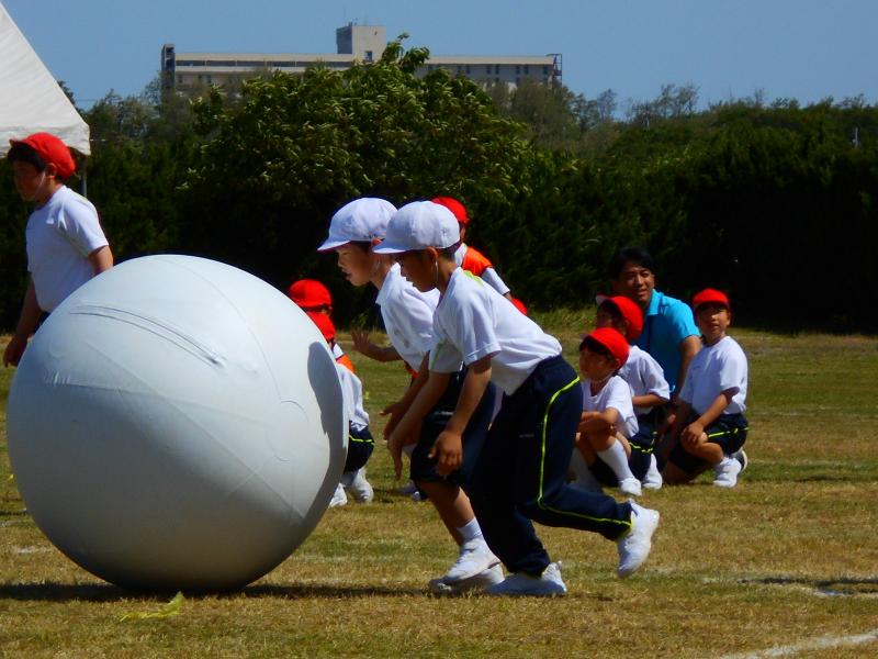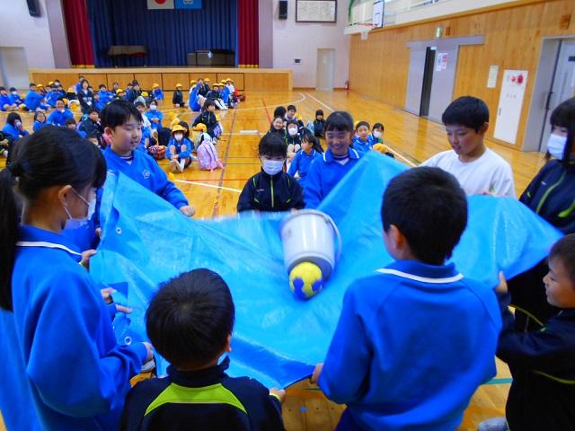 11月12日(火)に町内の5・6年生約140人が集まり、ミニ運動会が行われました。児童の親睦と融和を図るために町教育委員会が開いたもので、玉入れや大玉転がし、綱引きが行われました。最後には、5校対抗リレーが行われ、体育館いっぱいに歓声が響き渡りました。