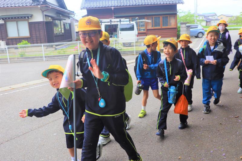 5月2日(木)に相見っ子スマイル遠足が行われました。縦割り班で協力しながら各ポイントでゲームを行いながら、ゴールの野球場を目指しました。野球場では、縦割り班ごとにゲームを楽しみました。縦割り班の遊びは6年生が、各ポイントのゲームは5年生が企画したものです。6年生も5年生も、低学年も楽しめるようにとゲームの内容を色々と工夫していました。道中でも高学年が低学年を気遣う姿が多くみられ、楽しく充実した1日となりました。保護者の皆様、お弁当の準備などありがとうございました。
