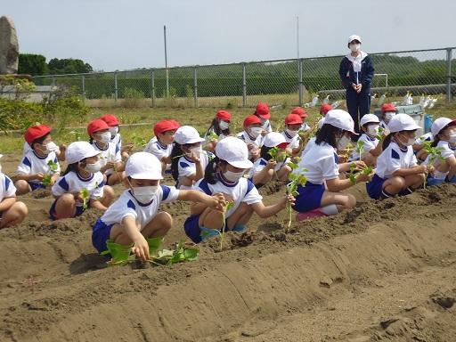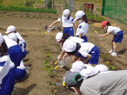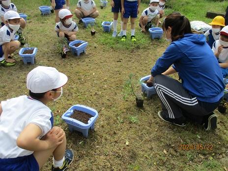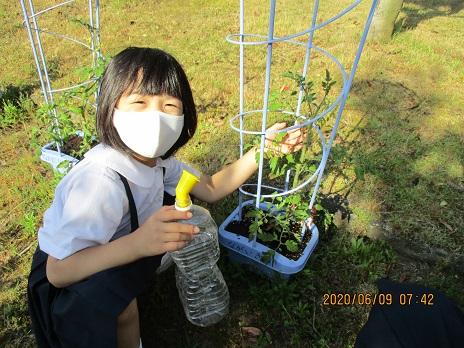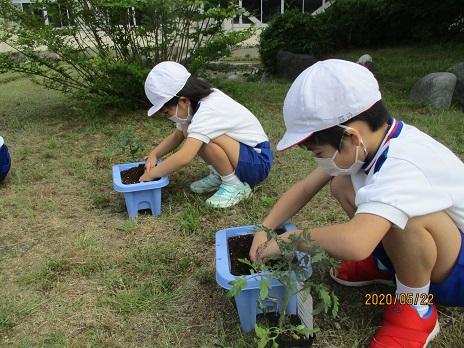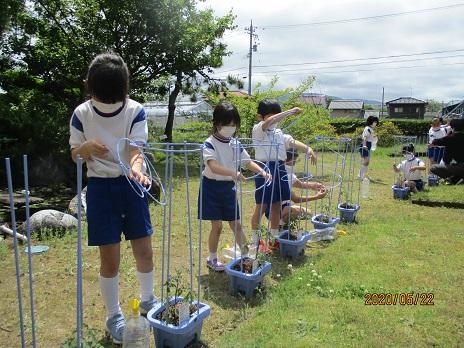 2年生は、ミニトマトを植えました。一人一苗です。