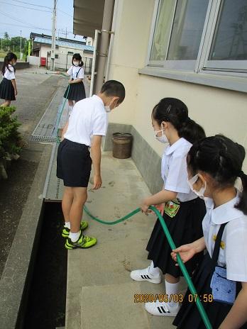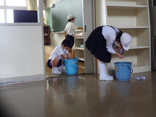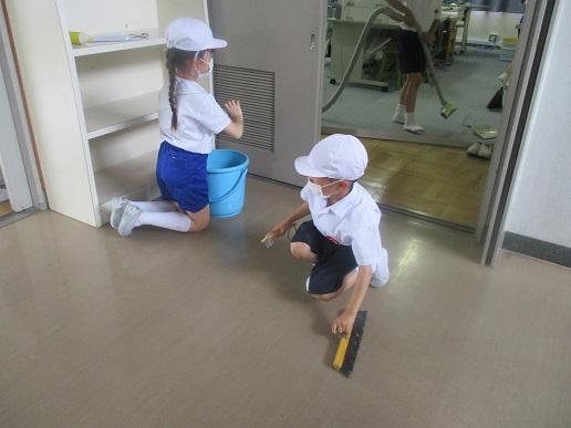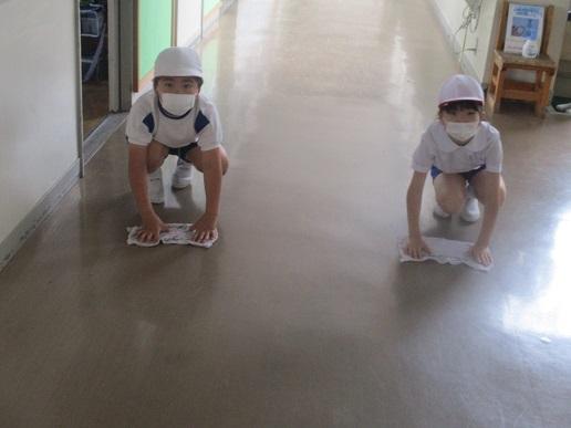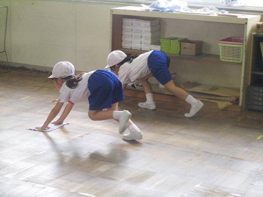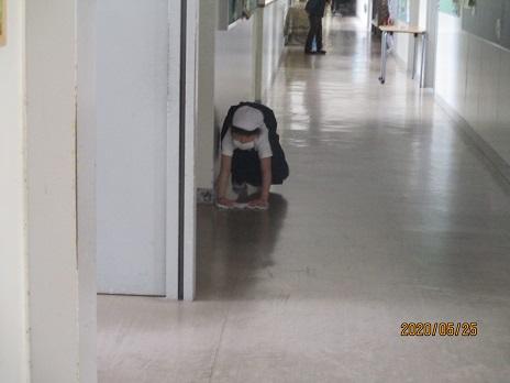 登校後、みんなで朝掃除です。みんなでやるとアッという間に校舎がきれいになります。