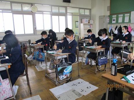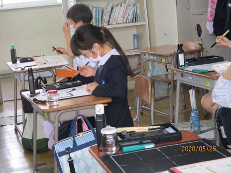 3年生の習字授業。いい姿勢ですね~。