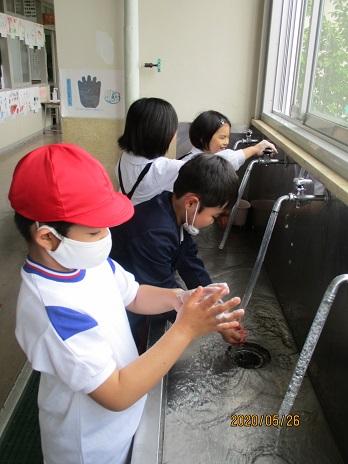 休み時間が終わったら、手洗い。消毒プッシュ。わすれません!
