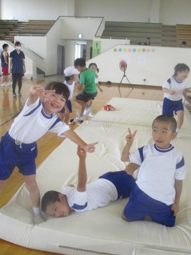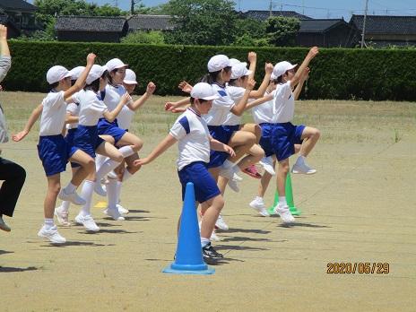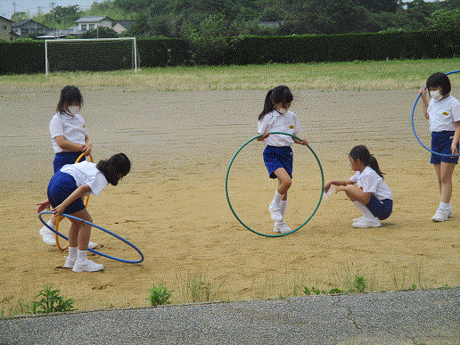 体を思いっきり、動かしています。久しぶりだね。みんなで体育。