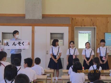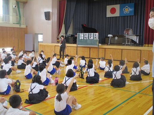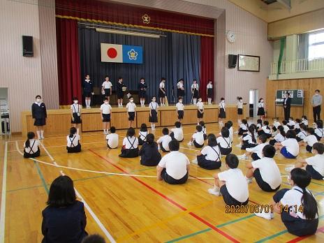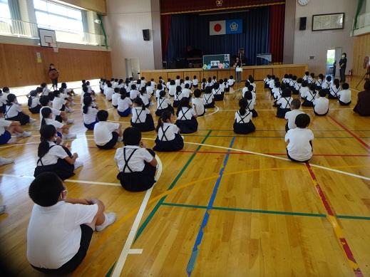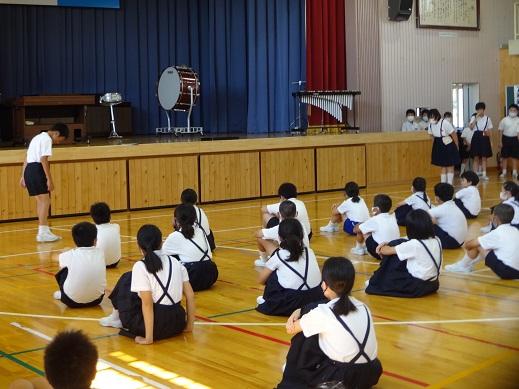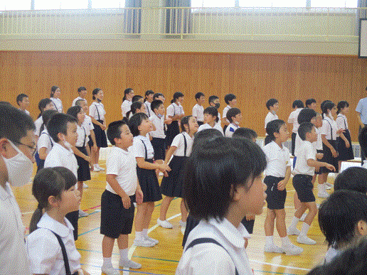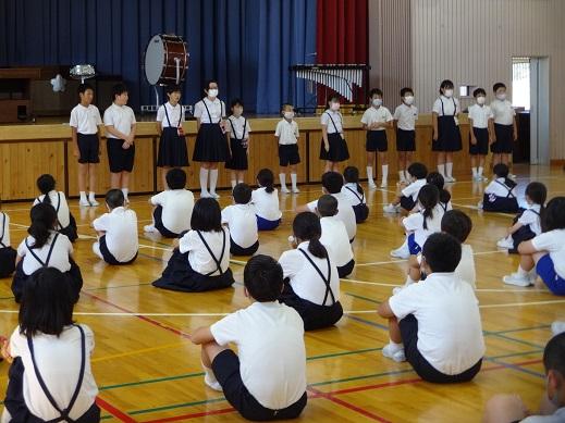最後に、相見音楽隊の合奏にのせて、校歌1題目だけ歌って、9月全校集会は終わりました。