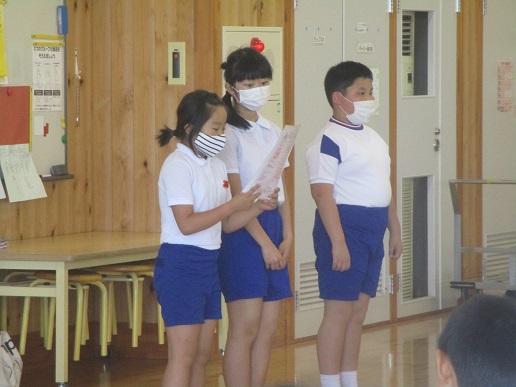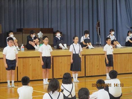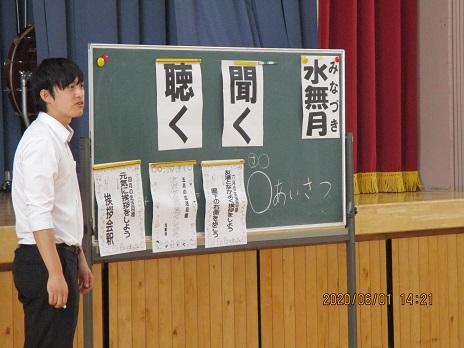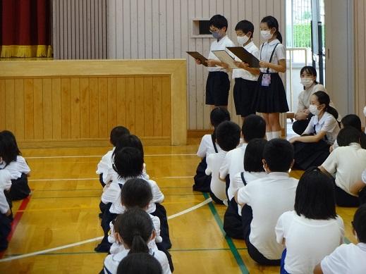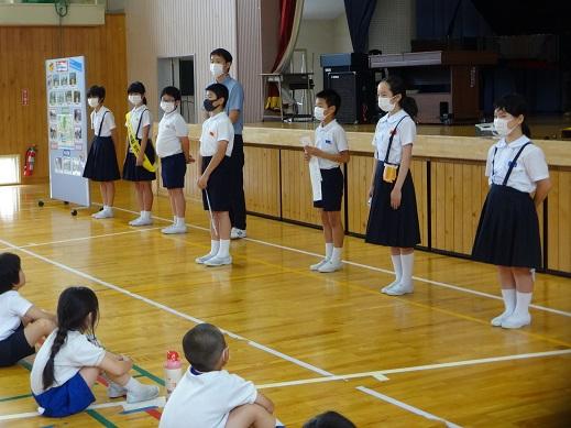 そして、児童会から、「会釈あいさつ名人」の表彰です。