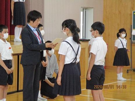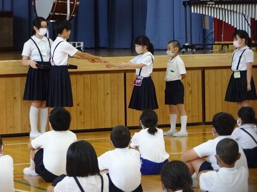 全ての学級が表彰されました。クラス代表の子が賞状をもらいます。