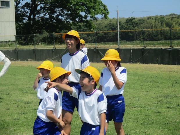 1年生たち、休み時間には、運動場へ飛び出してきます。
