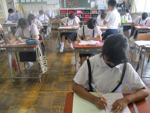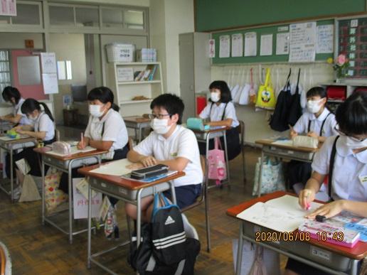 みんな、前の黒板をみて勉強です。ペアやグループはなるべく避けています。