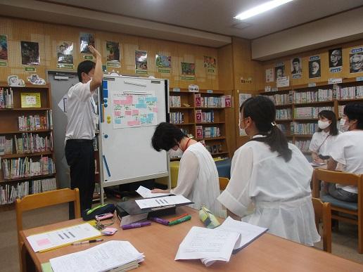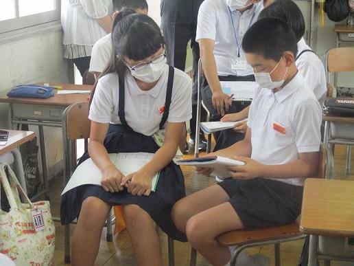 自分の書いたカードをグループになって、紹介しています。