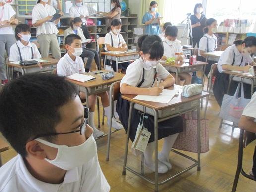 5年生。こちらも習字授業。筆を立てて筆遣いもGOOD!