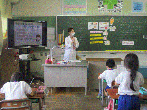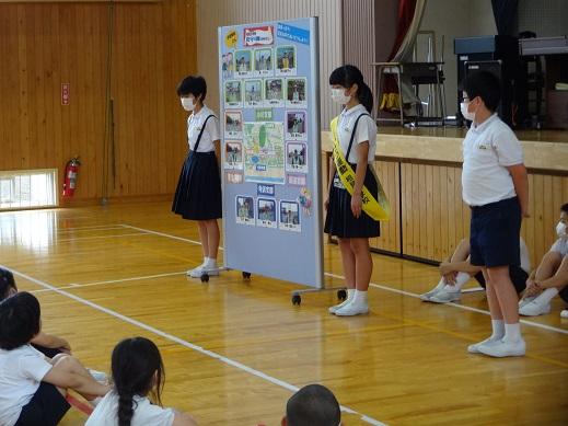 保健委員の子が、全校放送で呼びかけます。