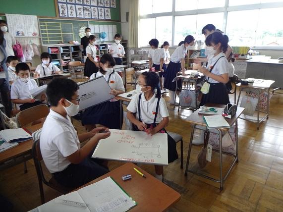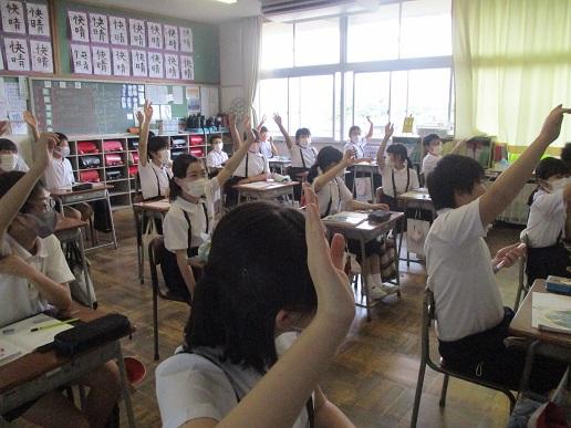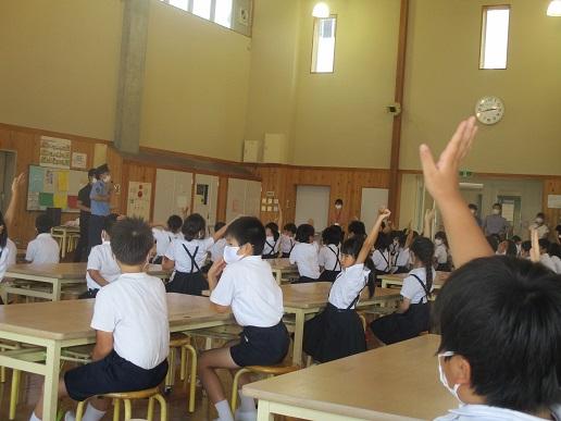 5年生が、質問に立って答えます。