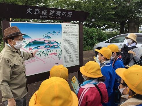 6年生が、ふるさと学習をするために、末森城址に出かけました。