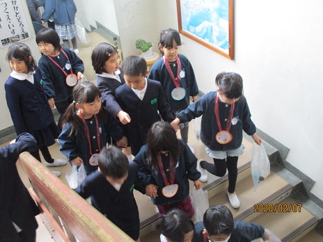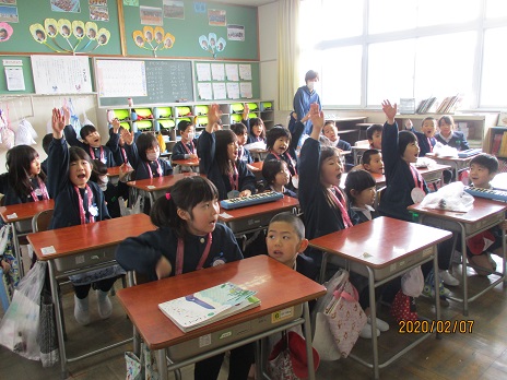 1年、3年、5年の子ども達が学校へやって来ました。