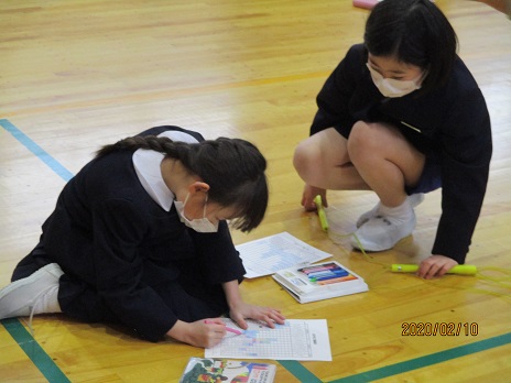 5年生は、世界の6州、3洋、3海の名前と位置。