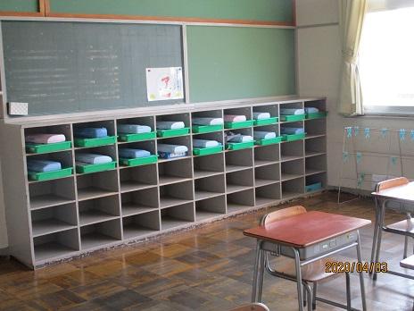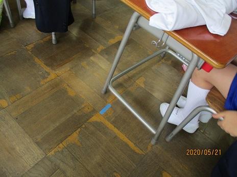 低学年の教室の児童机の下にはってあります。