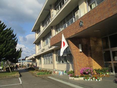 校長室の前の廊下に飾ってあります。