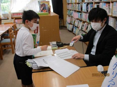 本日は、図書の本を借りたい子たちが学校へ登校してきました。