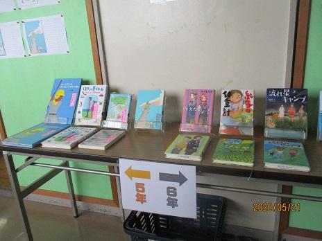 5年生と6年生用に、廊下に本が並んでいます。