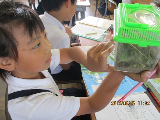 バッタの観察もしています。