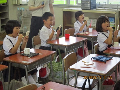 昨日、1年生対象に歯磨き指導を行いました。