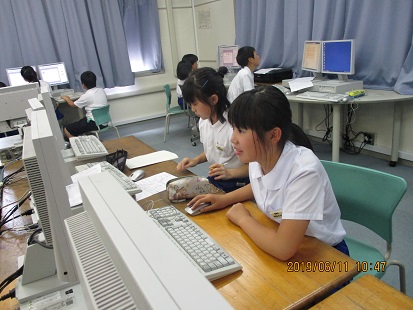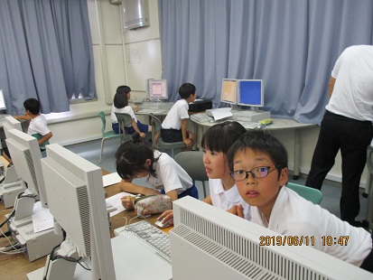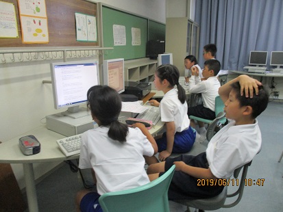 5年生がパソコン室で、総合学習をしています。