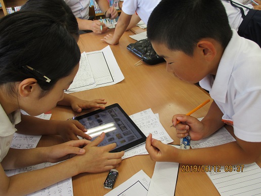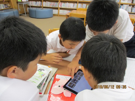 2限目です。4年生がタブレットを使って調べ学習をしています。