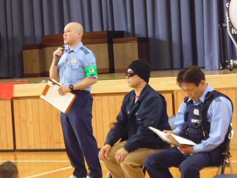 学校に不審者が侵入したと想定して、全児童は体育館へ避難しました。