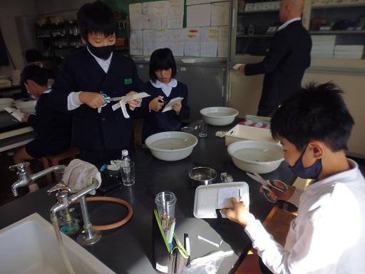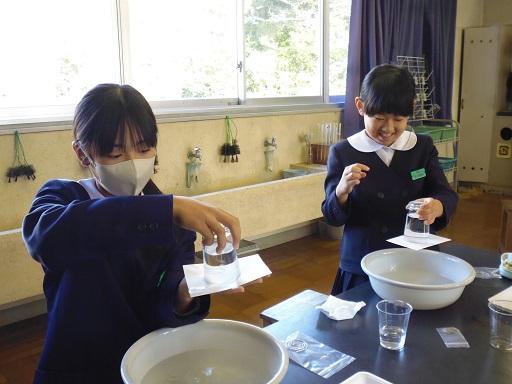集中して取り組む子ども達の姿や、何回も繰り返してやって確かめる姿がありました。一人一人が水に対する考え、知識が変わり、科学の不思議さ・面白さを感じる時間となりました。