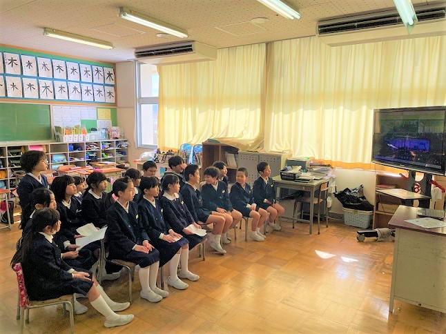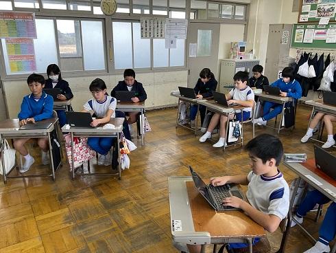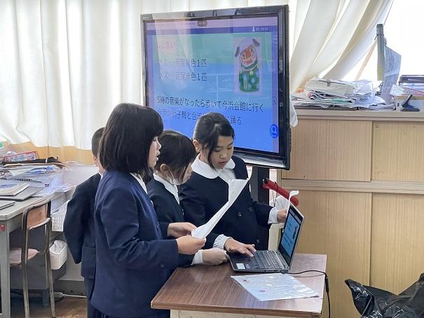 3年生は、「総合の学習の時間」に「町のよいところ」をテーマに調べ学習をしてきました。そして、町内5校の3年生がオンラインで、自分達が調べたことを発表する「合同発表会」を行いました。本校の3年生は、それぞれの地区の「ししまい」について分かりやすくプレゼンにまとめ、堂々と発表ができました。
