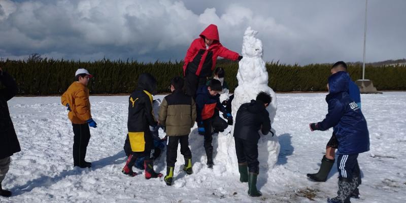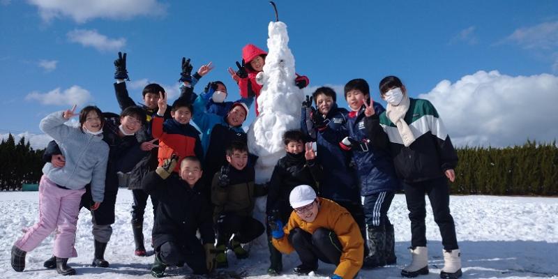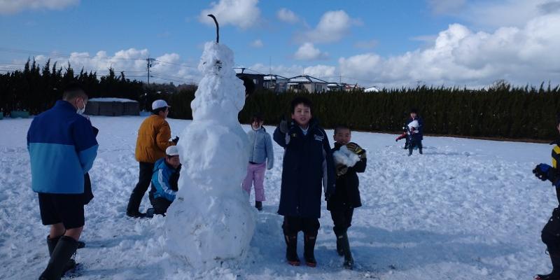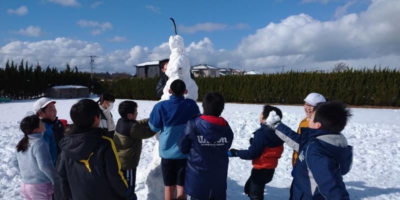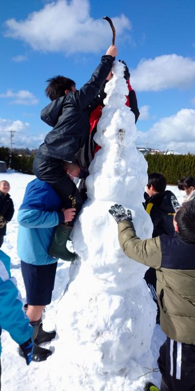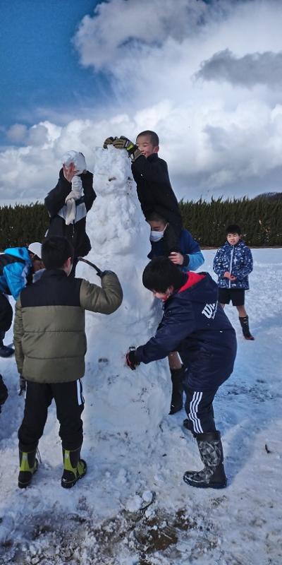 高学年の有志で自分たちよりもずっと大きな雪だるまを作りました。声をかけ合い、協力してあっという間にできあがりました。ここでも相見っ子ならではのよさが発揮されましたね。