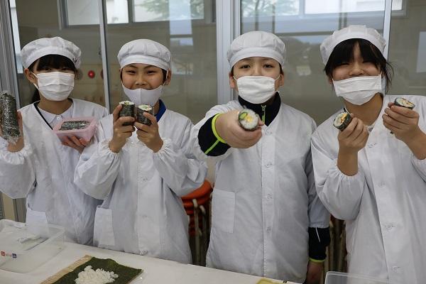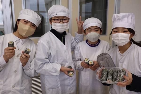 地域の方から秋にご寄付いただいたお米で、12月に1年生から4年生は「おにぎりづくり」をしました。そして、5・6年生は「中巻きづくり」に挑戦しました。「中巻きづくり」では、一本ずつ丁寧に巻き、出来上がるごとに笑顔が広がっていきました。6年生は昨年に続き2回目ということもあり、手際よくできました。手作りの楽しさ・感謝の心・地元への誇りを感じた時間でした。貴重なお米を本当にありがとうございました。