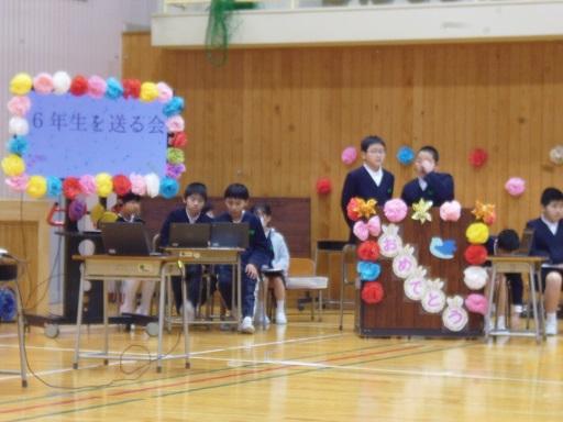 学校のリーダーとして頑張った6年生に「ありがとう」の気持ちを伝える「6年生を送る会」を行いました。それぞれの学年が、その学年ならではの出し物を披露しました。どの出し物にも6年生への「感謝」と「応援」の気持ちが込められていました。特に、準備から当日の進行・後始末まで、中心的役割を果たした5年生の姿は素晴らしく、本当に頼もしかったです。