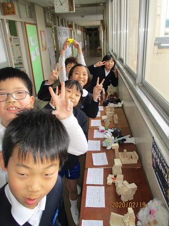 3年生の廊下に、こんなかわいらしい図工作品が鎮座しています。