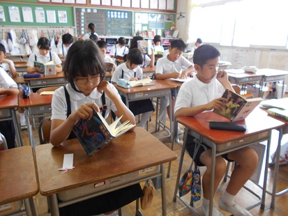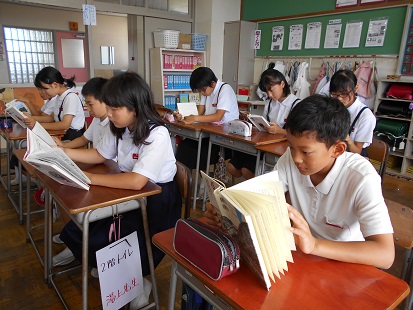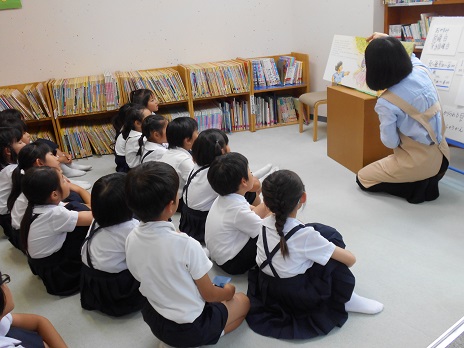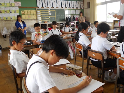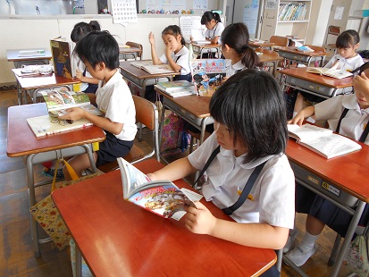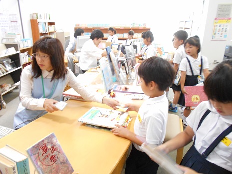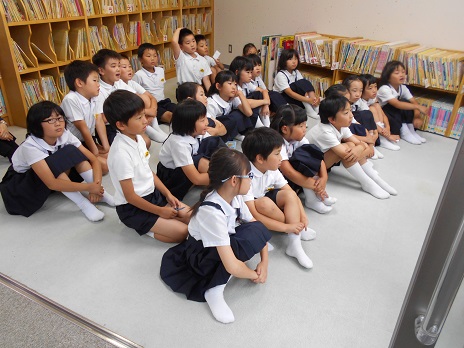 昨日、2年生22名は、町の図書館へバスに乗って出かけました。