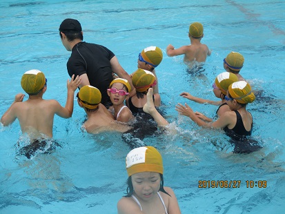 山田先生にまとわりつく子ども達。先生もたいへんです。