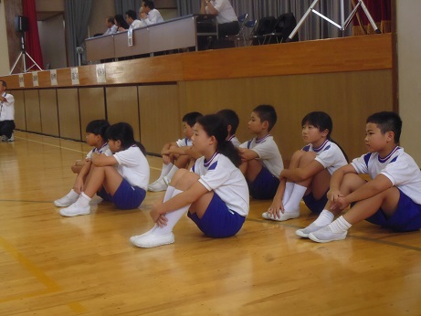 町内の4年生、77名が、一堂に志雄小学校体育館に集まりました。