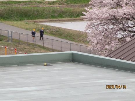 校舎3階から、登校する子どもの姿が見えます。何年生かな・・・?