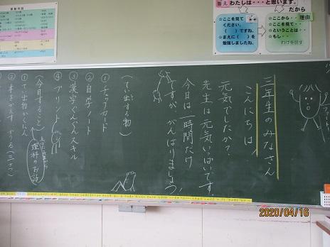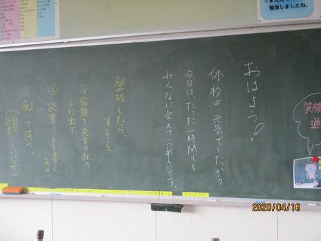 教室の黒板には、学級担任からメッセージが書かれてあります。