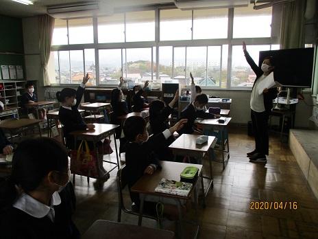 4年生、しっかり手を挙げて先生の話を聞いていますね。