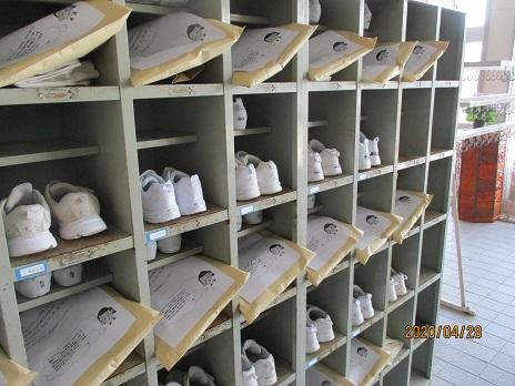 次々と来校頂き、下足箱の新しい宿題袋と交換されています。