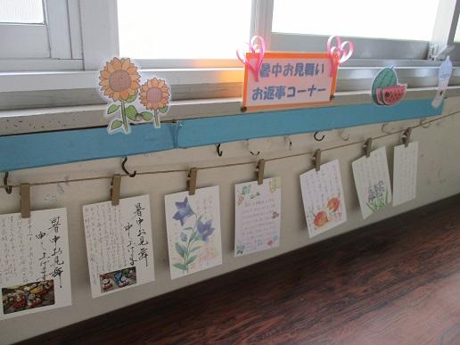 暑中お見舞いのお返事が、ぞくぞく学校に届いています。