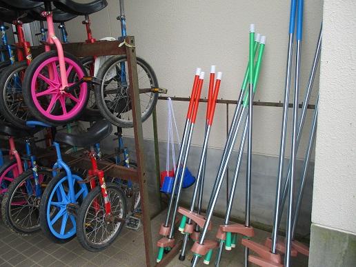 ほら! 体育館の玄関口、一輪車と一緒においてあります。