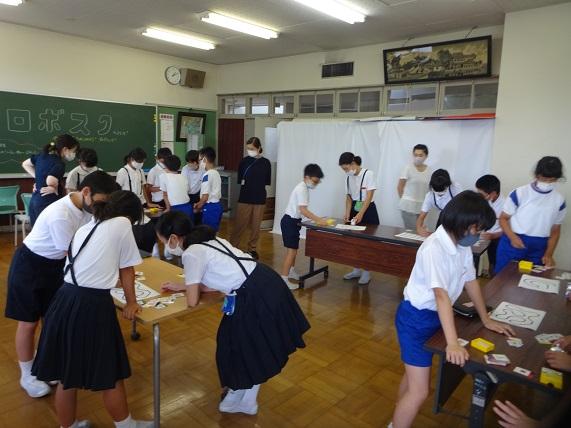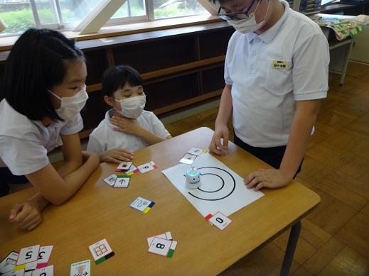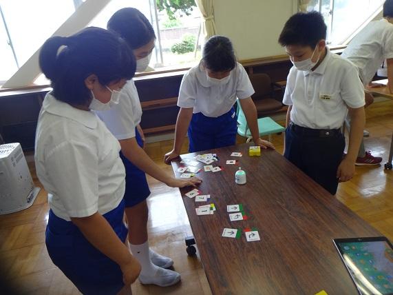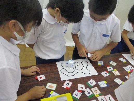 まずは、6年生。カードを食べさせたよ。その指令通り、チビロボが動いた!