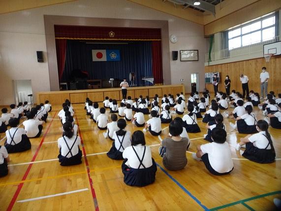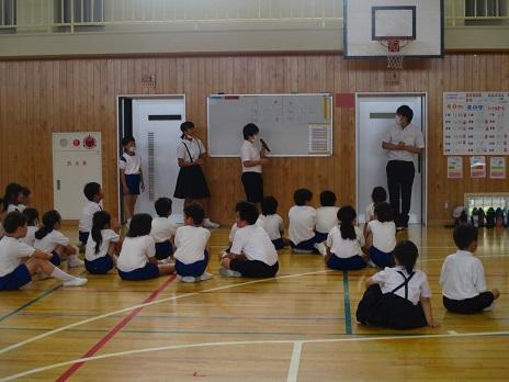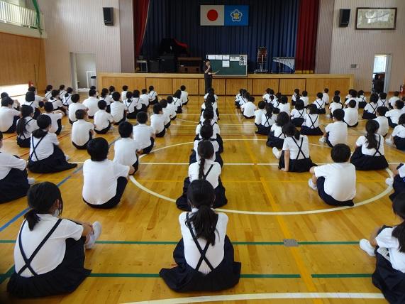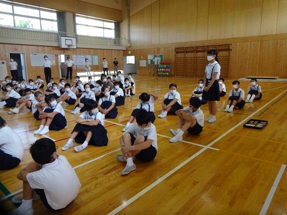 長休みに、2年生・4年生・6年生が体育館に集合。